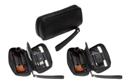 This case can comfortably carry 2 pipes, tobacco, a lighter, pipe cleaners and other accessories. The tobacco pouch is detachable if you want to just nip out with a bit of tobacco. There is also a detachable strap.