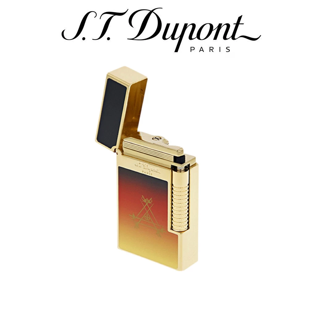 Le Grand Dupont is lacquered in shades of orange, with the gold-stamped logo of the prestigious Montecristo cigar brand on the front, and a golden sun and moon design on the back. It has a double flame system, with a soft flame that gently and slowly heats the cigar, plus a powerful, stable torch flame